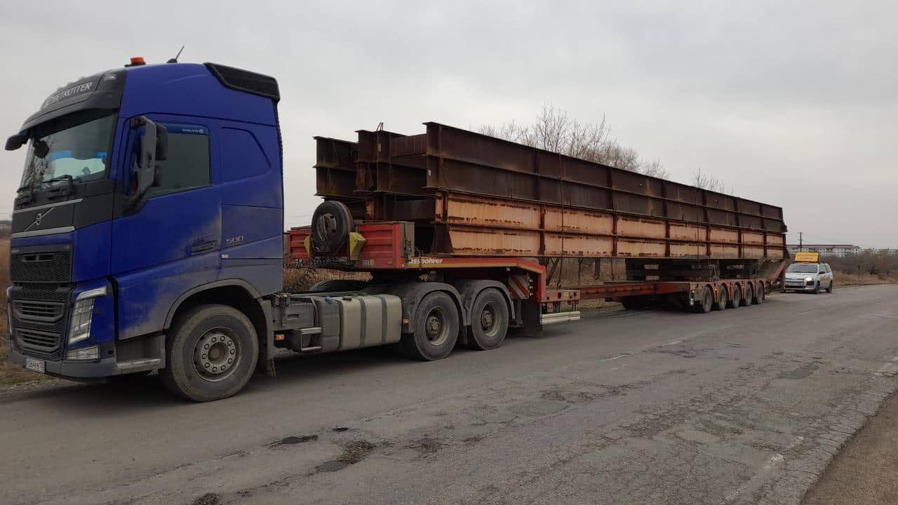 Перевозку осуществили на раздвижном трале-телескоп с большими возможностями. На телескопическом трале есть специальные кондукторы для перевозки мостовых железобетонных т-балок. Так же есть выравнивающие столы для перевозки самонесущего груза длиной 25-30м